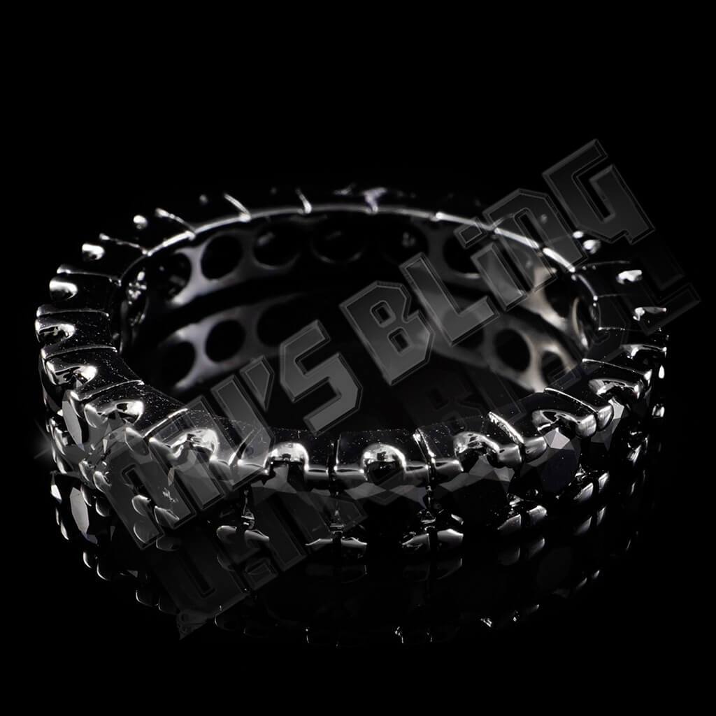 Make your dreams come true with this one of a kind black gold eternity promise ring. The circular ring speaks of everlasting eternity. The iced designer stones on top speak of how much you value your significant other. Give your special someone a proof of your undying care with this black gold promise eternity ring. They'll love you for it.
